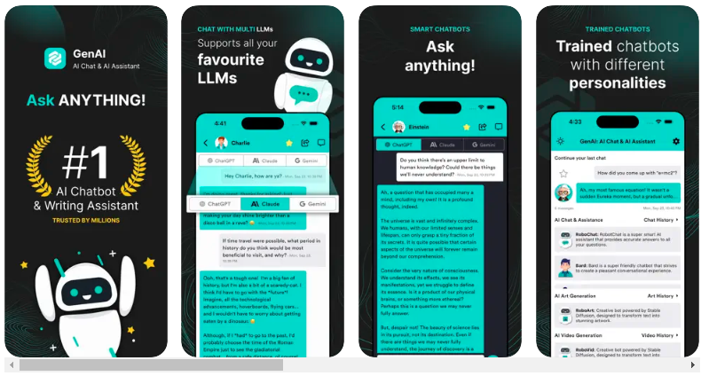 - Personalized Assistance: GenAI: AI Chat & AI Assistant learns your preferences, habits, and communication style, providing you with a tailored experience that caters to your unique needs. It anticipates your requirements and offers customized solutions, making it your personal digital companion.