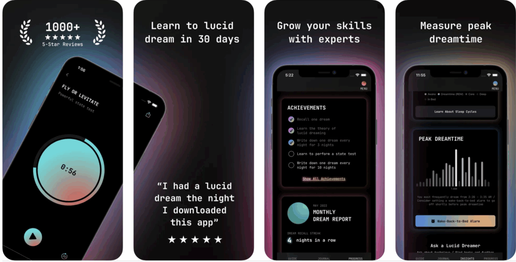 Many lucid dreaming apps offer features designed to enhance users’ experiences thru various methods, including:
