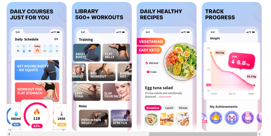 - Social Connectivity: Connect with a community of like-minded women, share your achievements, and participate in challenges to foster a supportive and motivating environment.